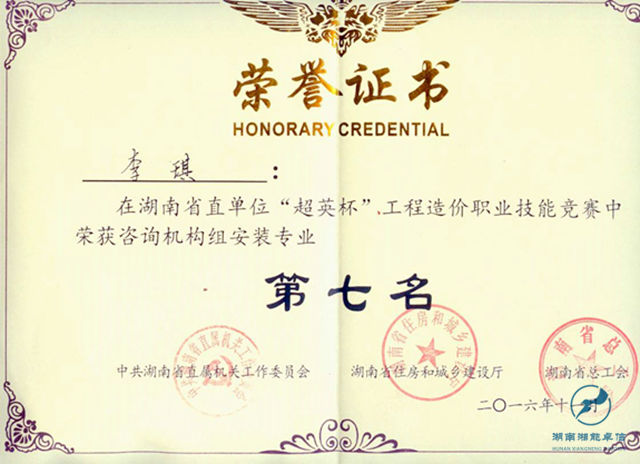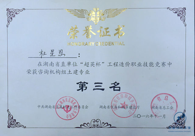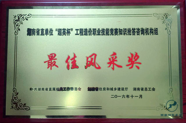 2016年11月28日, 由湖南省直屬機關工作委員會、湖南省住房和城鄉建設廳、湖南省總工會聯合舉辦,湖南省建設工程造價管理協會承辦的湖南省直首屆“超英杯”工程造價職業技能競賽在長沙建筑工程學校圓滿落幕。