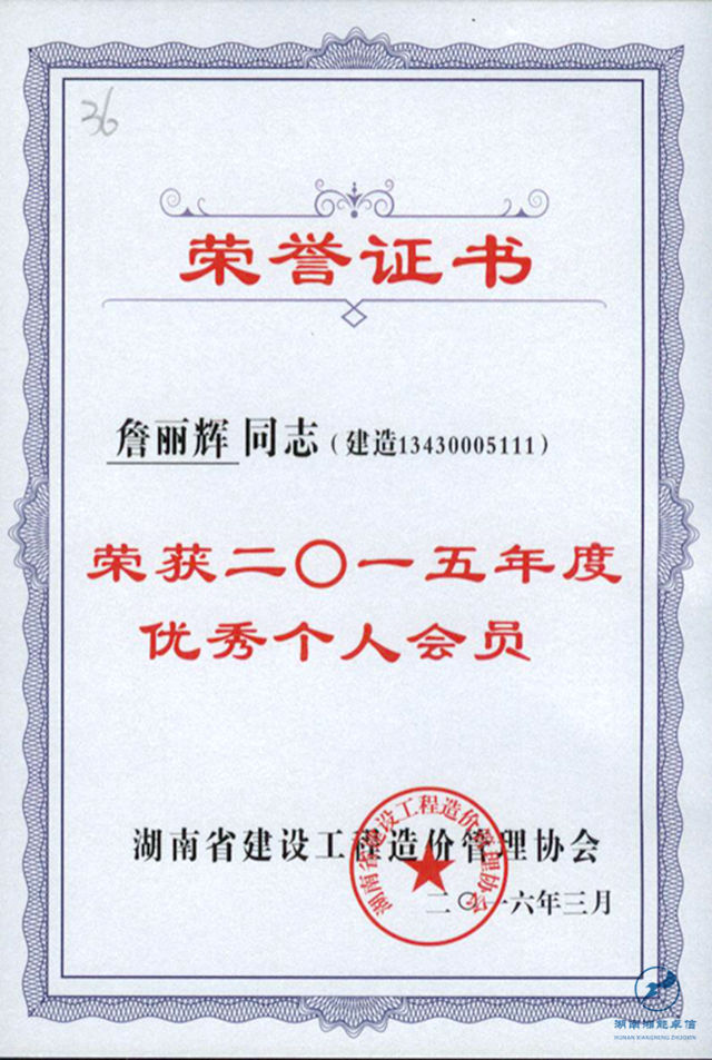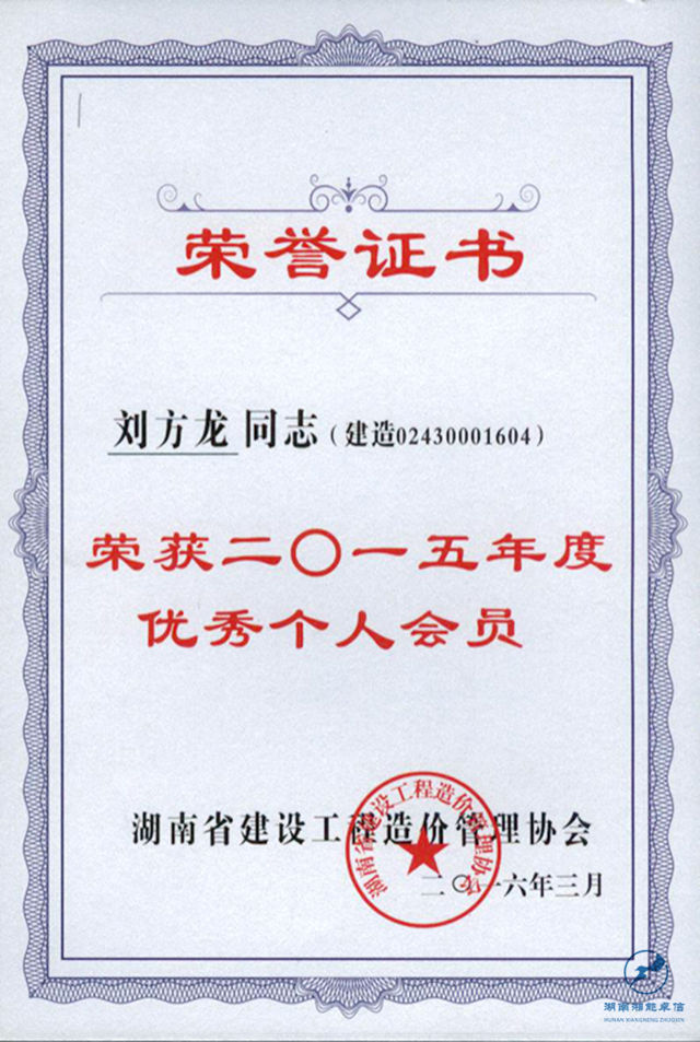 2015年12月湖南省建設(shè)工程造價管理協(xié)會組織開展了2015年度先進單位會員、先進個人會員、先進單位、協(xié)會先進工作者評選活動,我司獲得“2015年度先進單位會員”稱號,劉方龍、詹麗輝獲得“先進個人會員”稱號。